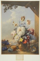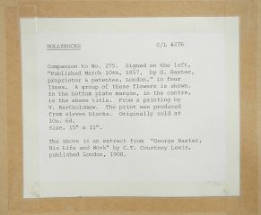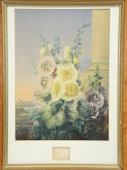 Two Burr Maple Framed Baxter Prints "Gardner's Shed" & "Hollyhocks", 16" x 10 1/2"