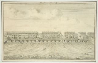 Engraving signed Toms, 8 1/4 x 13", "London Bridge" (restoration & foxing noted).
