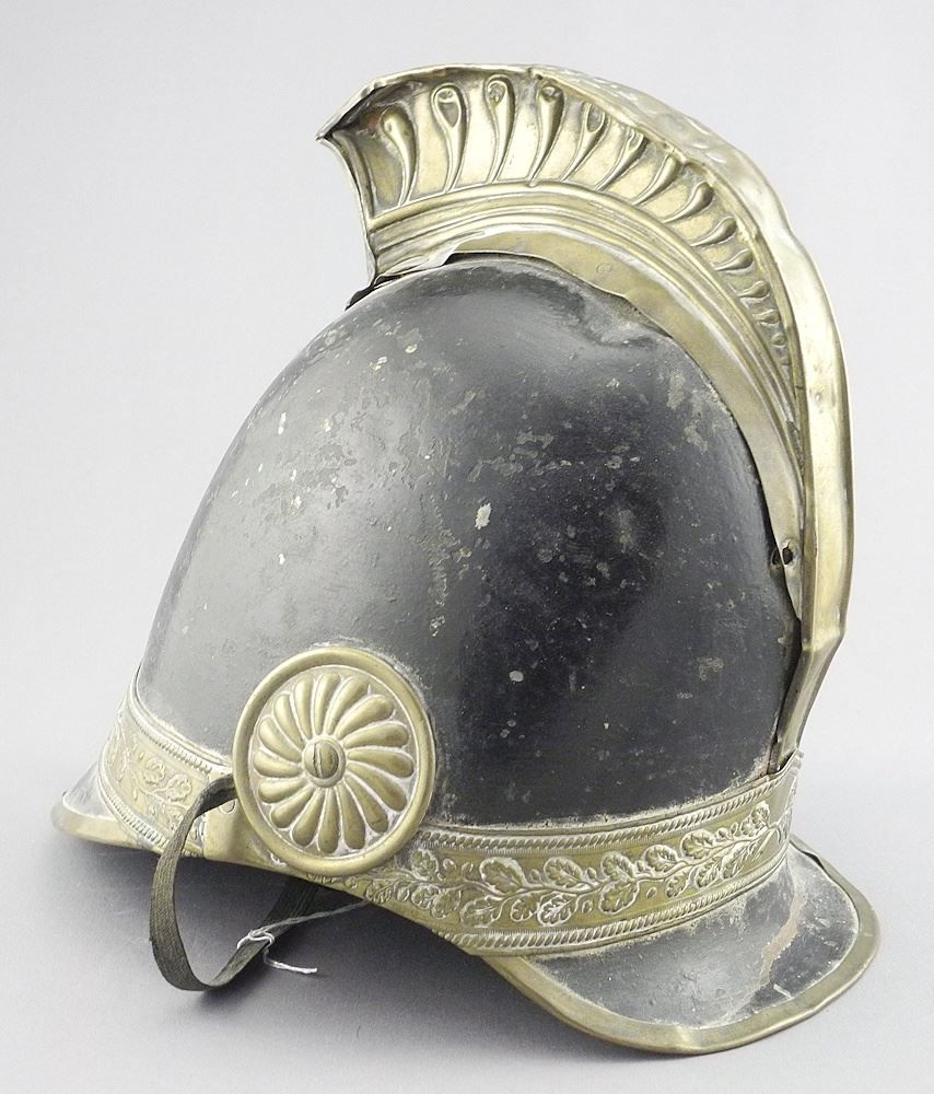 Antique Fireman's Helmet Marked R.F. , 10"L.
