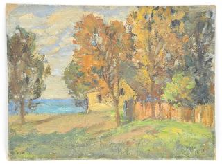 LOT 147 Oil on Board signed Walter Toiles'19 , 9 x 12", "Landscape with Cottage & Fence". Estimate: $100 - $150 Sold For: $70 Auction Date: Tuesday, May 27 2025 at 4:00 PM