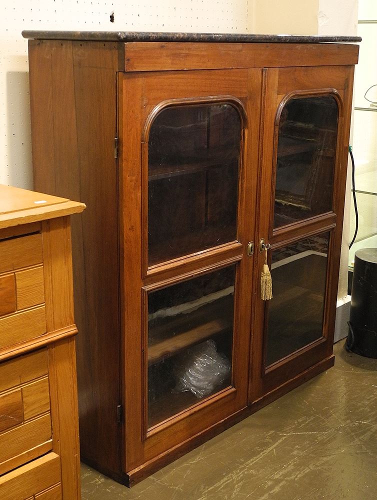 Mahogany Framed Bookcase with Marble Top, 39" x 13 1/2" x 43"h