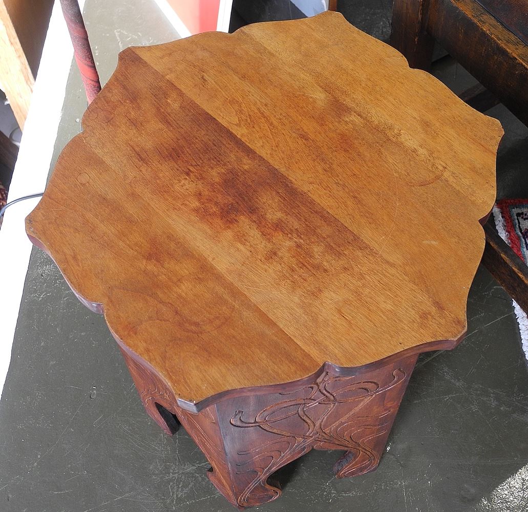 Hardwood Art Nouveau Tabouret End Table, 18 1/4"h.