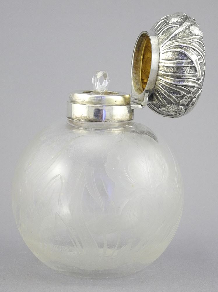 Antique Hallmarked Wheel Cut Iris Perfume Bottle, LONDON C & Company Ltd., Small F (back of lid