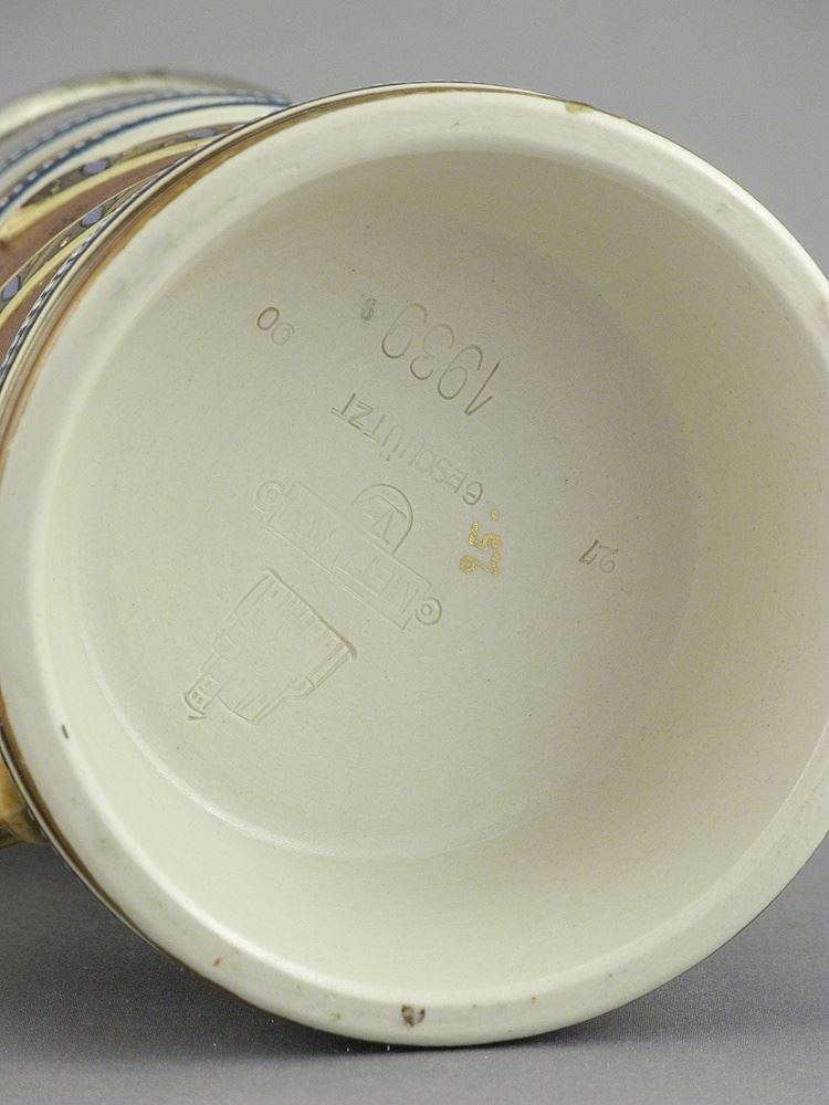 Mettlach Stein with .800 Silver Cover, 5 3/8"h.