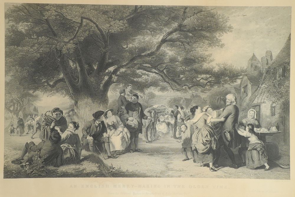 Framed 19th C Engraving by Wm Hull, 24 1/2" x 37", "An English Merry- Making"