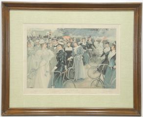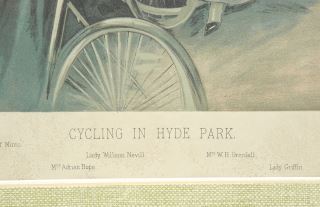 LOT 106 Vincent Brooks Day & Son "Cycling in Hard Park" Lithograph June 11/1896, 15 x 20 1/2". Estimate: $60 - $100 Auction Date: Tuesday, May 27 2025 at 4:00 PM