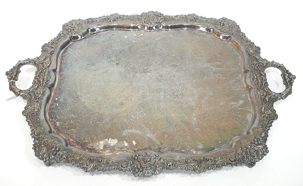 19th C. Silver Plated Tray, 28 3/4"w