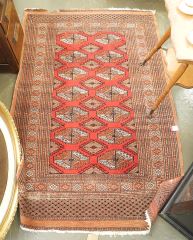 LOT 60 Hand Knotted Bokhara Wool Carpet Approximately 6'5" x 4'1". Estimate: $200 - $500 Sold For: $200 Auction Date: Tuesday, September 23 2025 at 4:00 PM