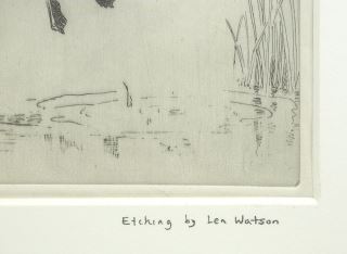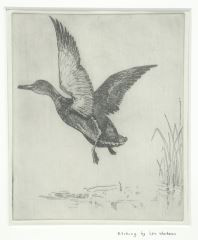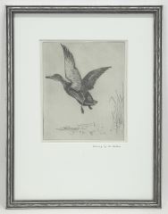 LOT 174 Etching by Len Watson, 6 3/8 x 5 1/4", "Mallard in Flight". Estimate: $60 - $100 Auction Date: Tuesday, September 23 2025 at 4:00 PM