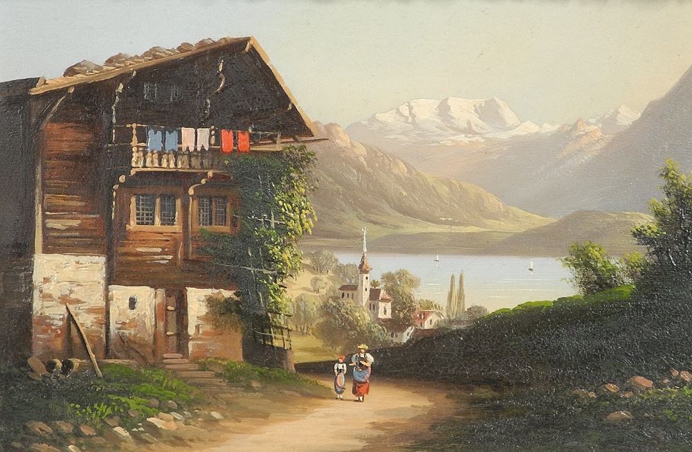 Oil on Board signed Hillerfinger Verso, 5 3/4 x 8", "Lucerne 11th August 1889".