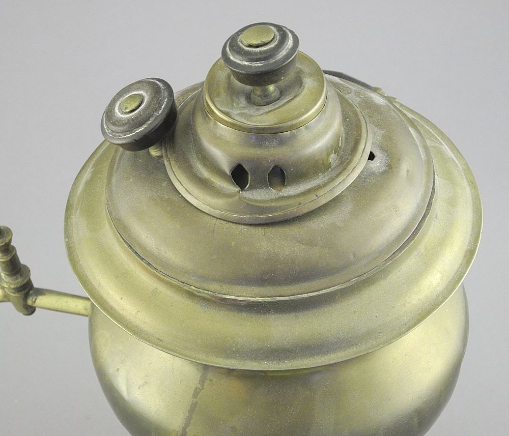 LOT 47 Miniature Brass Samovar, 10 1/8"h (damaged hands/as found). Estimate: $50 - $60 Sold For: $25 Auction Date: Tuesday, September 23 2025 at 4:00 PM