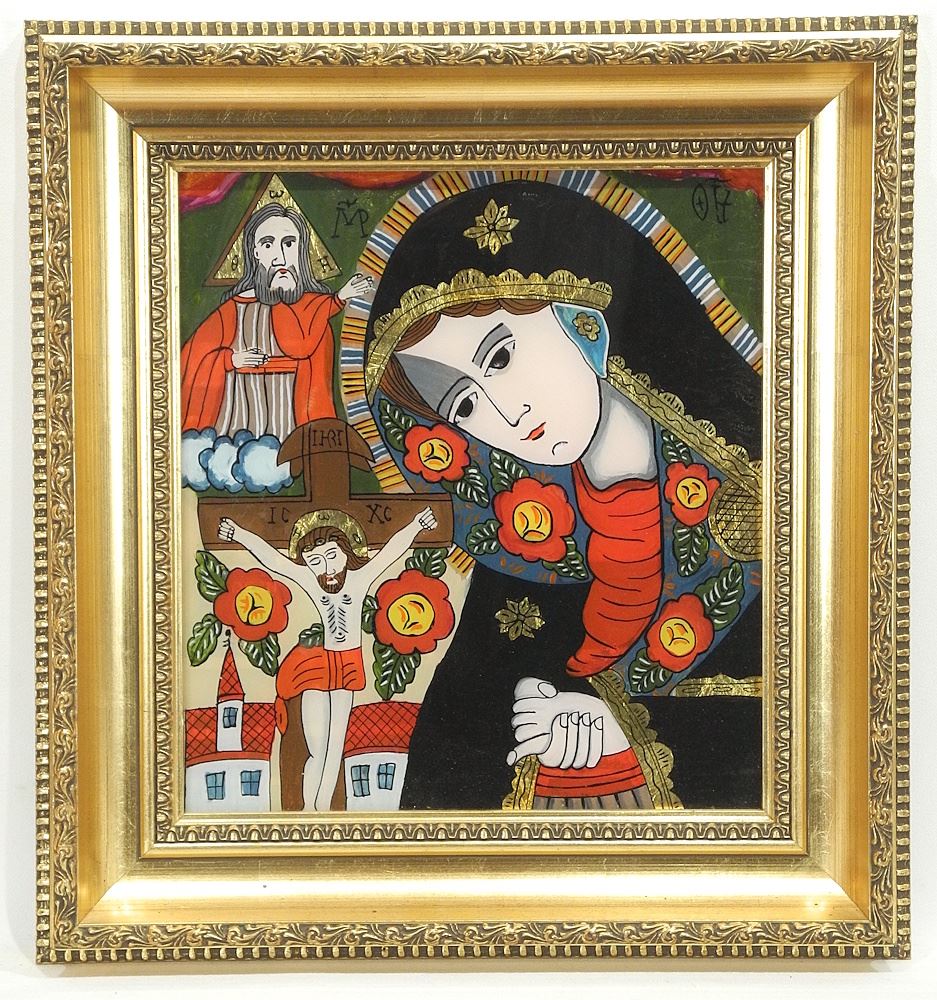 LOT 213 Three Romanian Reverse Painted Glass Icons, Largest 10 3/4 x 9 3/4". Estimate: $100 - $200 Sold For: $130 Auction Date: Tuesday, September 23 2025 at 4:00 PM