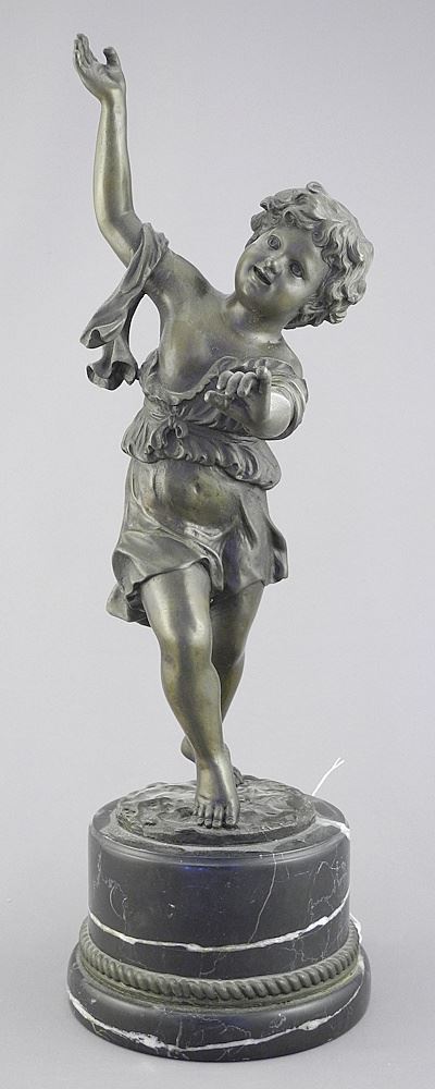 LOT 33 Bronze Sculpture on Marble Plinth signed E.Plat, 15 7/8", "Frolicking Boy", 20th C. Estimate: $150 - $300 Auction Date: Tuesday, September 23 2025 at 4:00 PM
