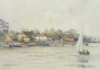 Miniature Watercolour signed H. Simmonds'90, 3 x 4", "Hamble River".