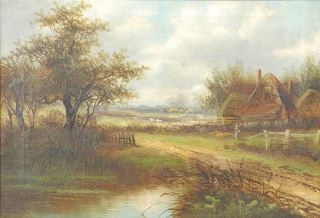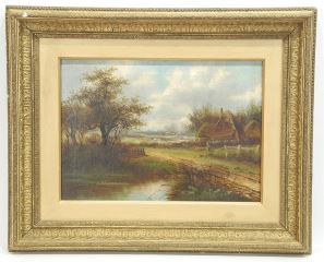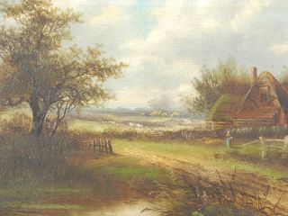 Oil on Canvas signed Indistinctly, 10 x 14", "Farm Scene with Solitary Figure".