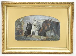 LOT 199 Oil on Paper After J.F.Herring, 8 1/2 x 15", "Horses Watering". Estimate: $60 - $100 Sold For: $200 Auction Date: Tuesday, September 23 2025 at 4:00 PM