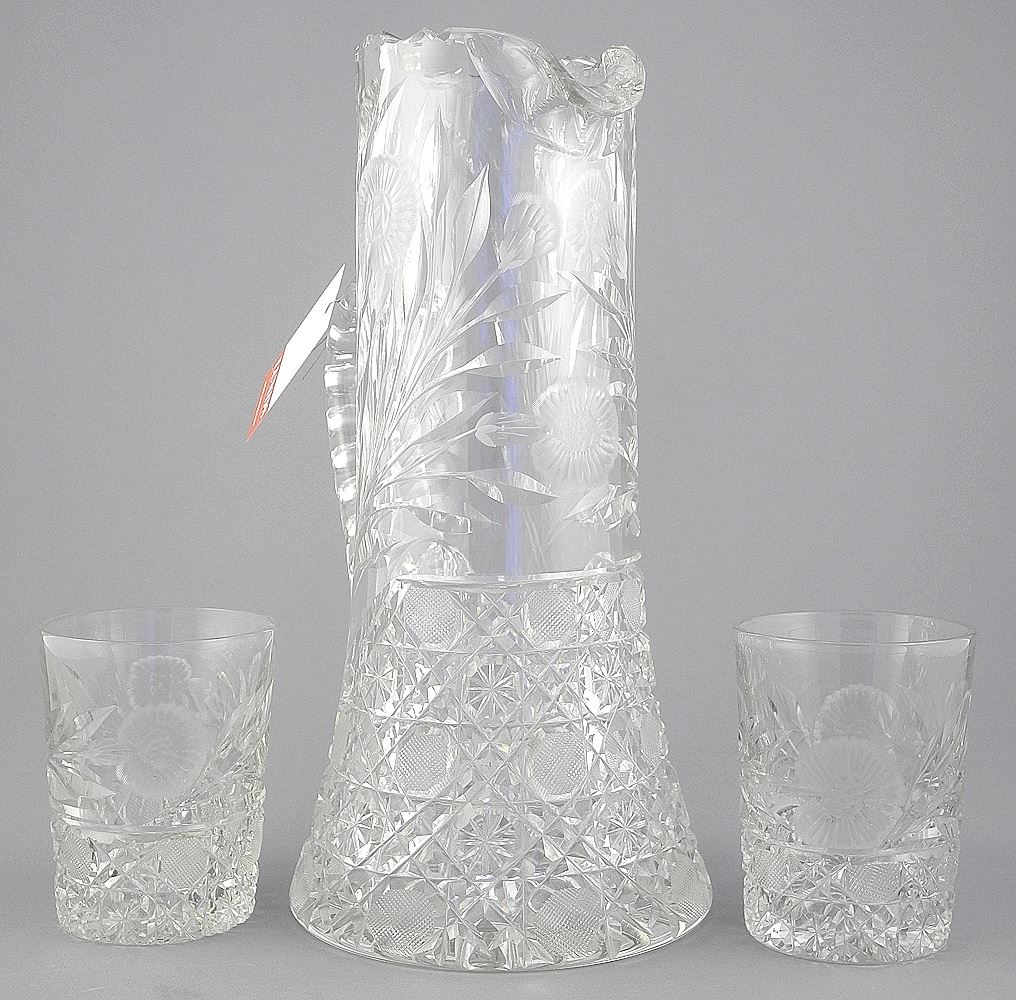 Antique Cut Crystal Lemonade Set on Silver Plate & Mahogany Tray, 11 1/8 "h.