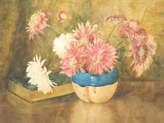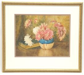 LOT 79 Watercolour Monogrammed E.W.(Edith Wrigley), 10 x 13 1/8", "Still Life w/ Chrysanthemum's", C.191 Estimate: $50 - $100 Sold For: $50 Auction Date: Tuesday, September 23 2025 at 4:00 PM