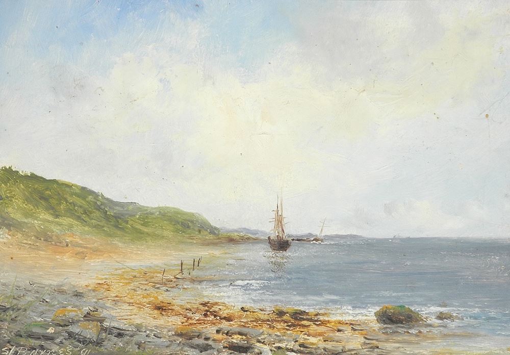 LOT 46 Oil on Artist Board signed S.Barnes 9 1/4 x 13 1/4", "Coastal Scene with Boats". Estimate: $60 - $100 Sold For: $45 Auction Date: Tuesday, September 23 2025 at 4:00 PM