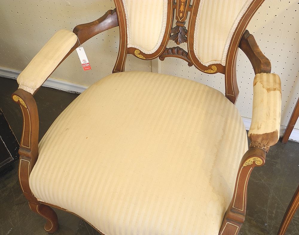 LOT 7 Pair of Edwardian Inlaid Mahogany Arm Chairs. Estimate: $60 - $120 Sold For: $60 Auction Date: Tuesday, September 23 2025 at 4:00 PM
