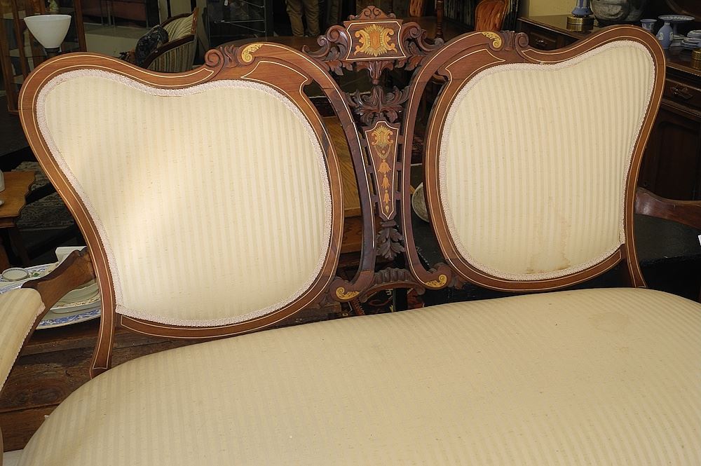 Edwardian Mahogany Inlaid Settee.