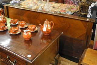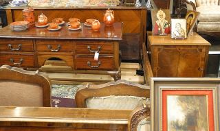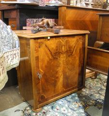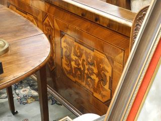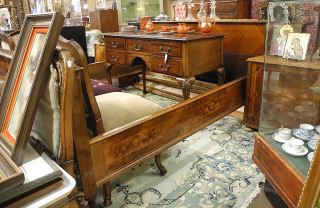 19th C. European Inlaid Mahogany Bedstead Converted to King (66"w inside) w/ Nightstands.