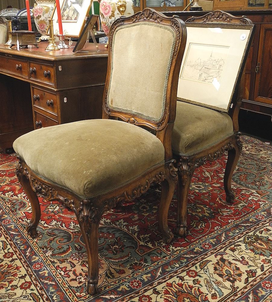 Five Carved Mahogany Salon Chairs, 37 1/2"h.