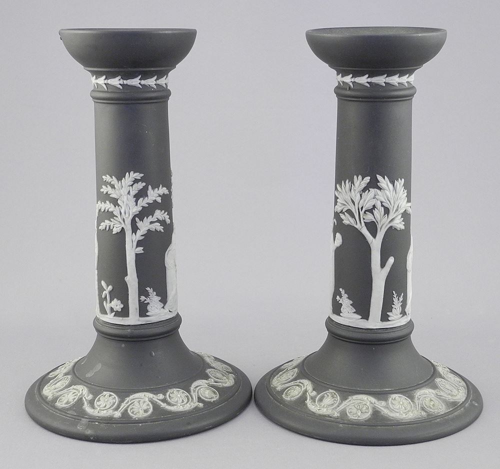 Pair of Wedgwood Black Jasper Ware Candle Sticks, 7 1/16"h.