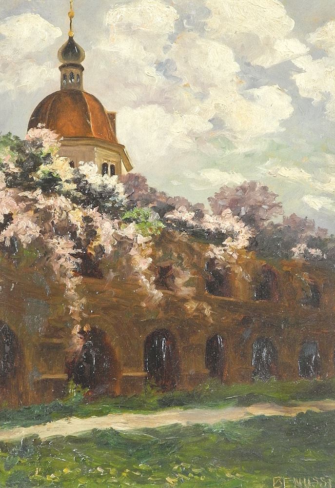 LOT 20 Oil on Board signed (Ercole) Benussi, 12 7/8 x 9", "Aqueduct with Spire". Estimate: $60 - $120 Sold For: $150 Auction Date: Tuesday, September 23 2025 at 4:00 PM