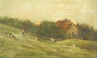 LOT 182 Oil on Board signed F.Birje, 6 1/2 x 10", "Cows in Pasture". Estimate: $50 - $100 Sold For: $110 Auction Date: Tuesday, September 23 2025 at 4:00 PM