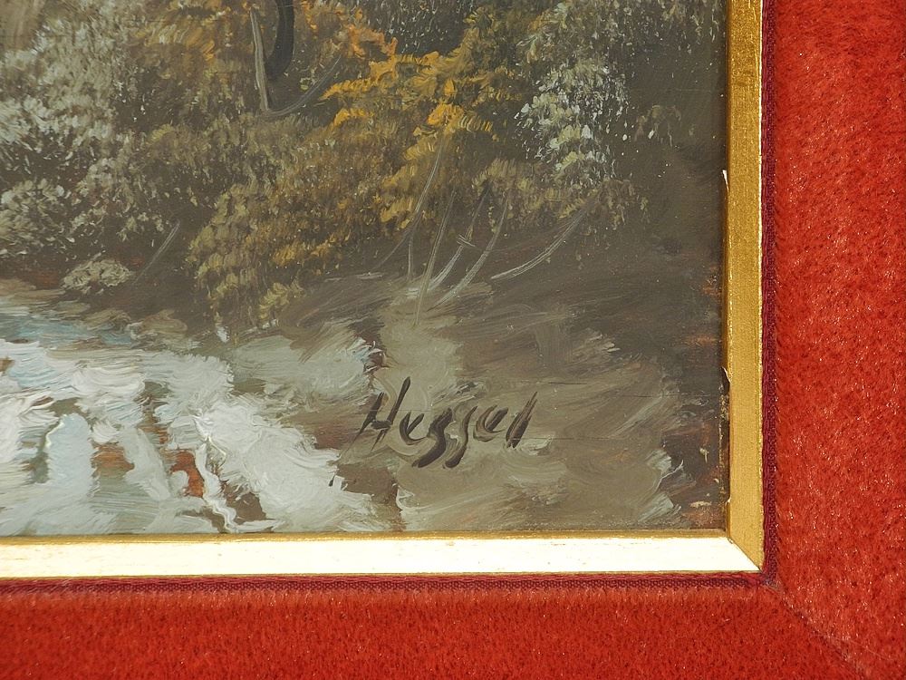 Pair of Oil on Board signed Hessel, 5 7/8 x 15 3/4", "Canal Scenes in Winter & Spring".