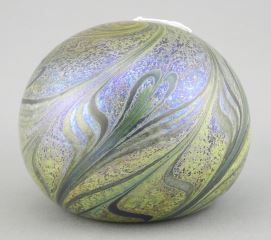 LOT 278 Art Glass Paper Weight signed (Mel) Munsen, 2 1/2 x 3 1/8" Diam. Estimate: $60 - $100 Sold For: $100 Auction Date: Tuesday, September 23 2025 at 4:00 PM