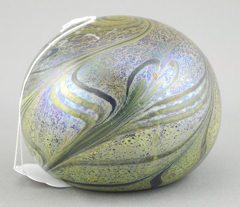 Art Glass Paper Weight signed (Mel) Munsen, 2 1/2 x 3 1/8" Diam.