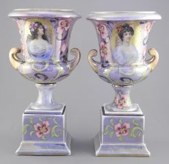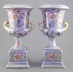 LOT 303 Pair of Early 20th C. Iridescent Porcelain Urns w/Bindenschild Austria Mark, 11 1/8"h. Estimate: $60 - $100 Sold For: $70 Auction Date: Tuesday, September 23 2025 at 4:00 PM