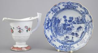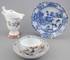 LOT 105 Chinese Export Porcelain Dish/ Tea Bowl & Saucer/Cream Jug (edges nibbled). Estimate: $150 - $200 Sold For: $110 Auction Date: Tuesday, November 04 2025 at 4:00 PM