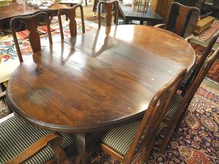 LOT 199 Mahogany Dining Table & 8 Chairs, 2 Leaves, 65"L Closed. Estimate: $60 - $120 Sold For: $30 Auction Date: Tuesday, November 04 2025 at 4:00 PM