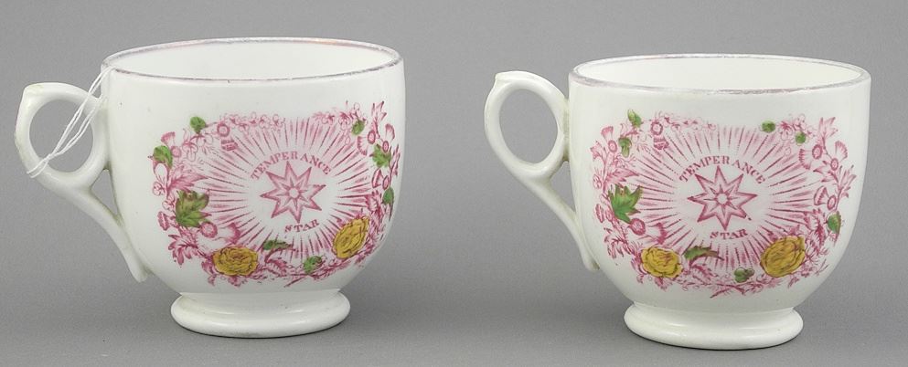 LOT 51 Two Pink Lustre "Temperance" Teacups & Saucers (one cracked). Estimate: $50 - $60 Auction Date: Tuesday, November 04 2025 at 4:00 PM