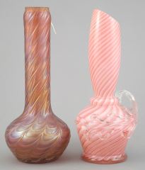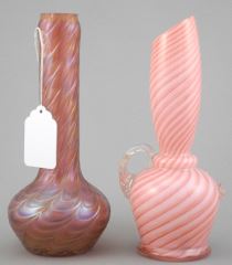 LOT 62 Two Bohemian Vases: Iridescent Kralik Vase & Franz Weiz Candy Stripe Vase, 7 1/4 &7 1/8" Estimate: $50 - $60 Sold For: $20 Auction Date: Tuesday, November 04 2025 at 4:00 PM