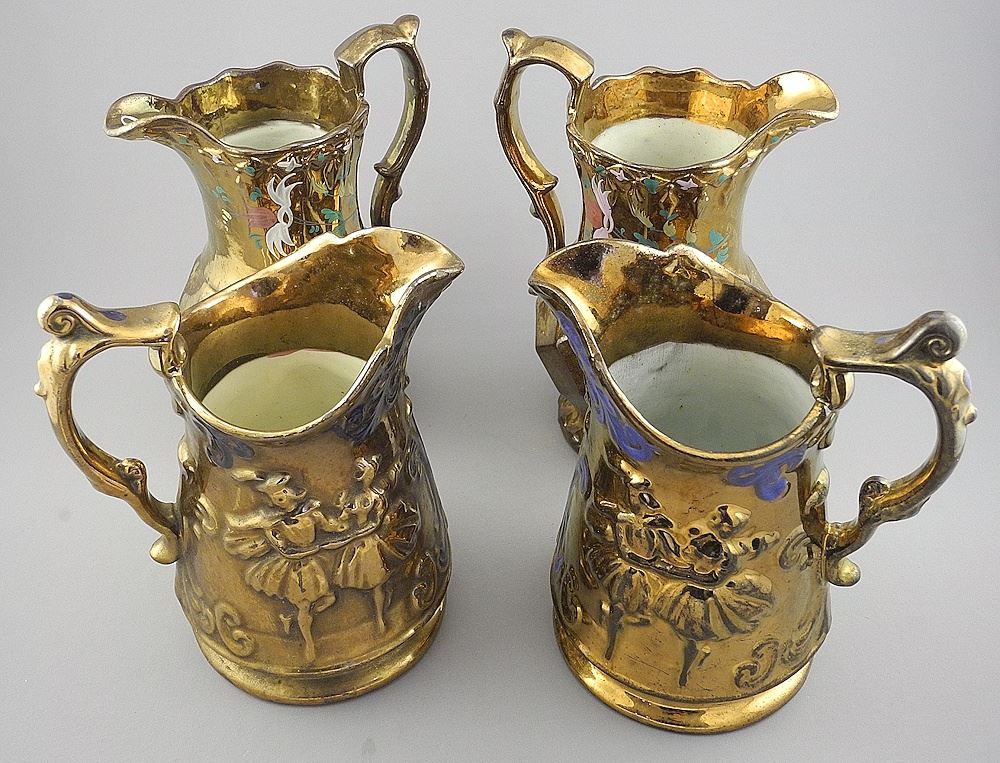 LOT 193 Two Pair Antique Staffordshire Copper Lustre Jugs, Tallest 8" (one cracked). Estimate: $50 - $70 Auction Date: Tuesday, November 04 2025 at 4:00 PM