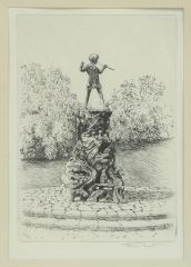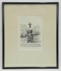 Etching signed James Grant, 6 1/2 x 4 1/2", "Peter Pan in Hyde Park", C.1925.