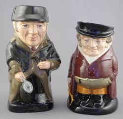 Two Royal Doulton Toby Jugs: Sherlock Holmes & The Huntsman, Tallest 8 7/8"h.