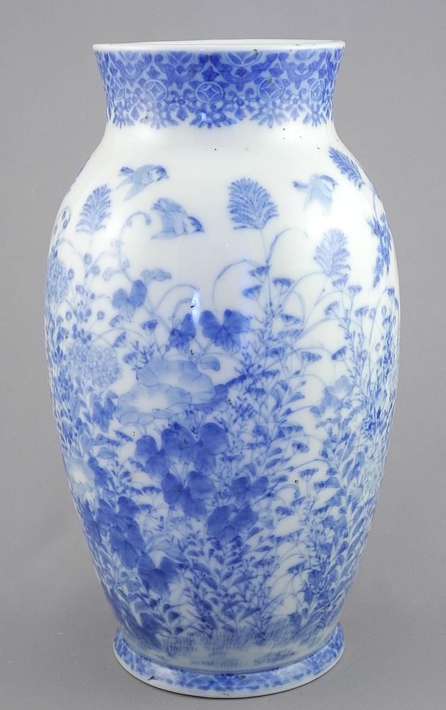 Japanese Seto Blue & White Porcelain Vase with 6 Character Mark, 10 1/8"h