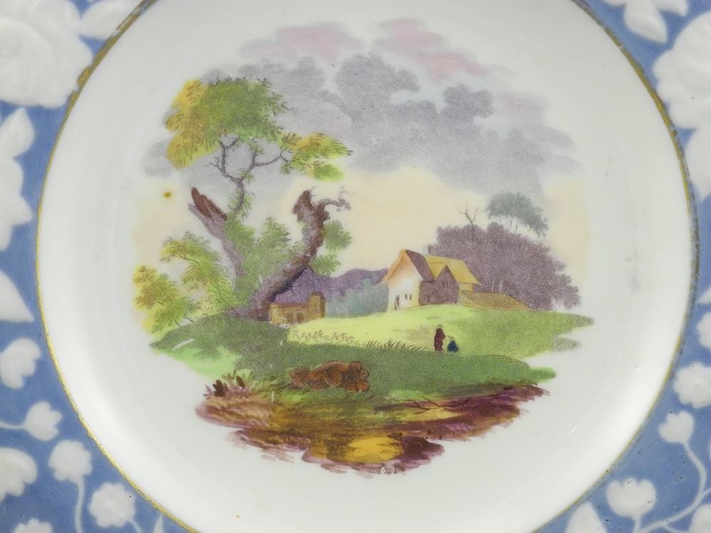 Collection of New Hall Porcelain Wares, Plates 8 1/8" Diameter, (sauceboat damaged).