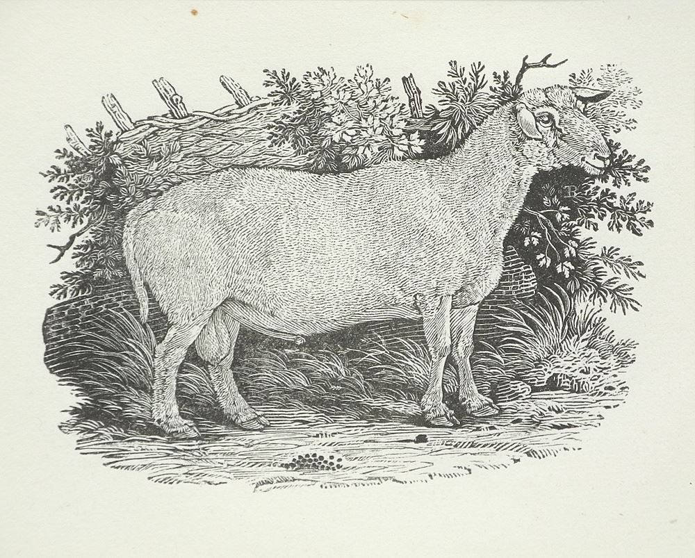Wood Engraving by Thomas Bewick, 3 1/8 x 3 1/2", "Sheep in Profile".