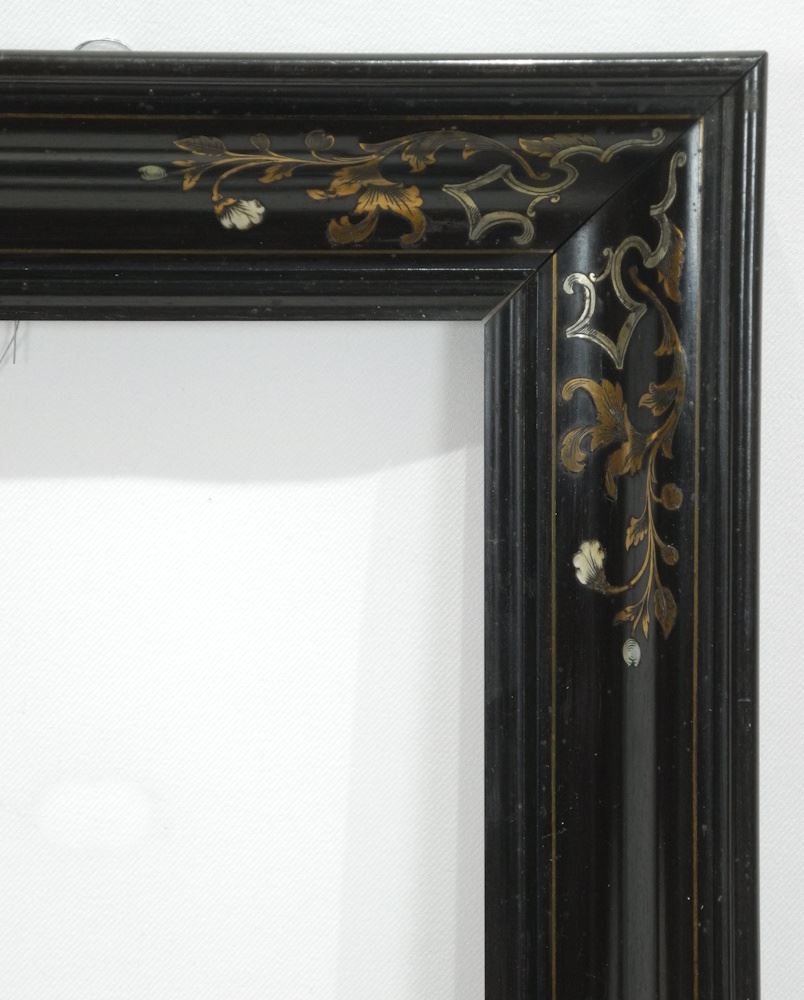 19th C. Ebonized Boulle Frame, Receives 11 x 9" Stretcher/Mirror.