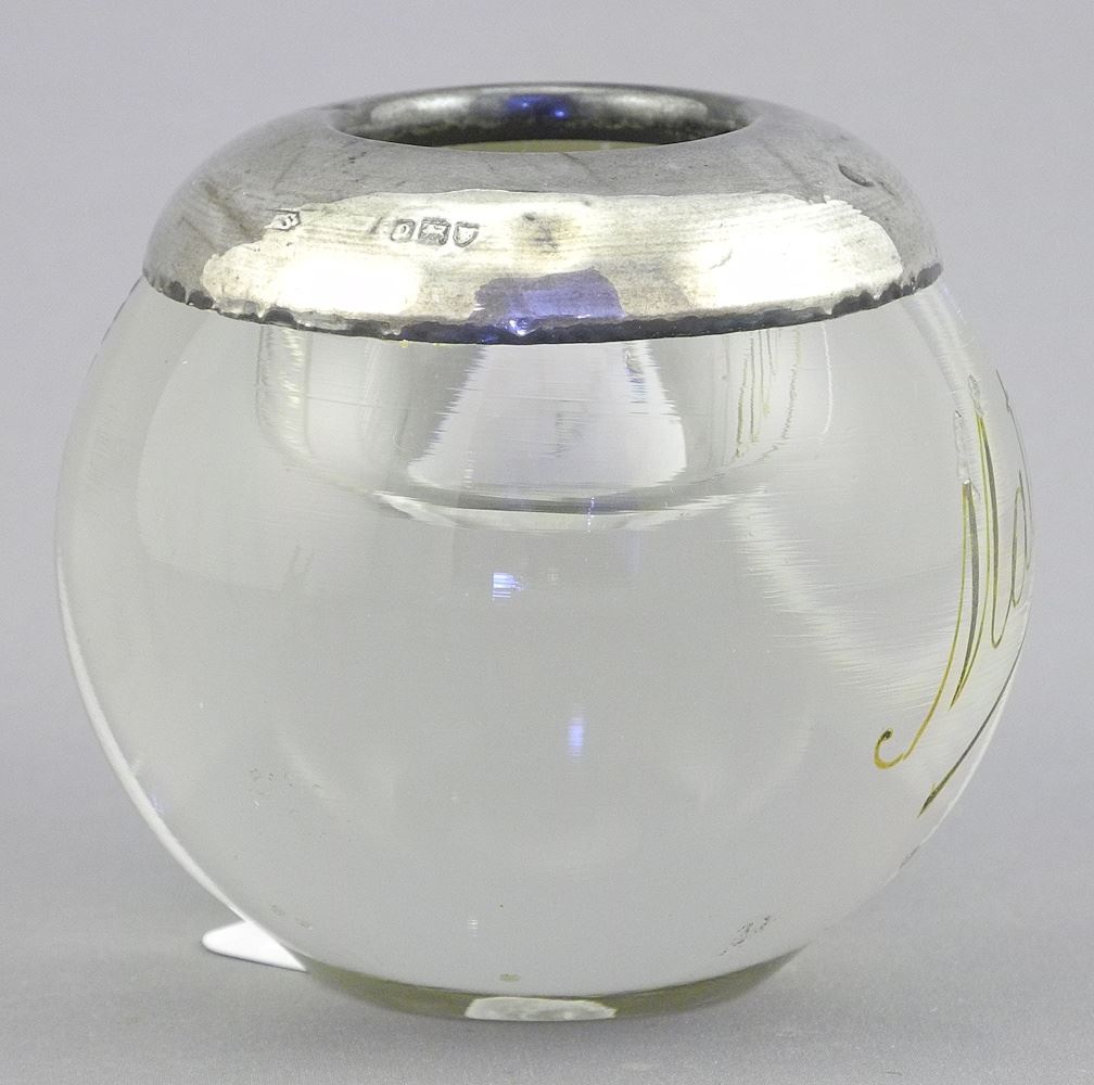 Hallmarked Silver & Glass "Matches" Striker, 2 3/8"h.