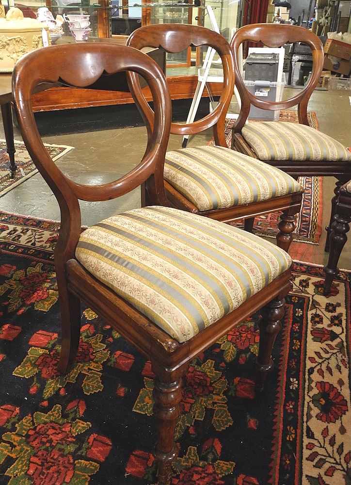 LOT 256 Four Victorian Mahogany Balloon Back Dining Chairs. Estimate: $50 - $150 Sold For: $60 Auction Date: Tuesday, November 04 2025 at 4:00 PM