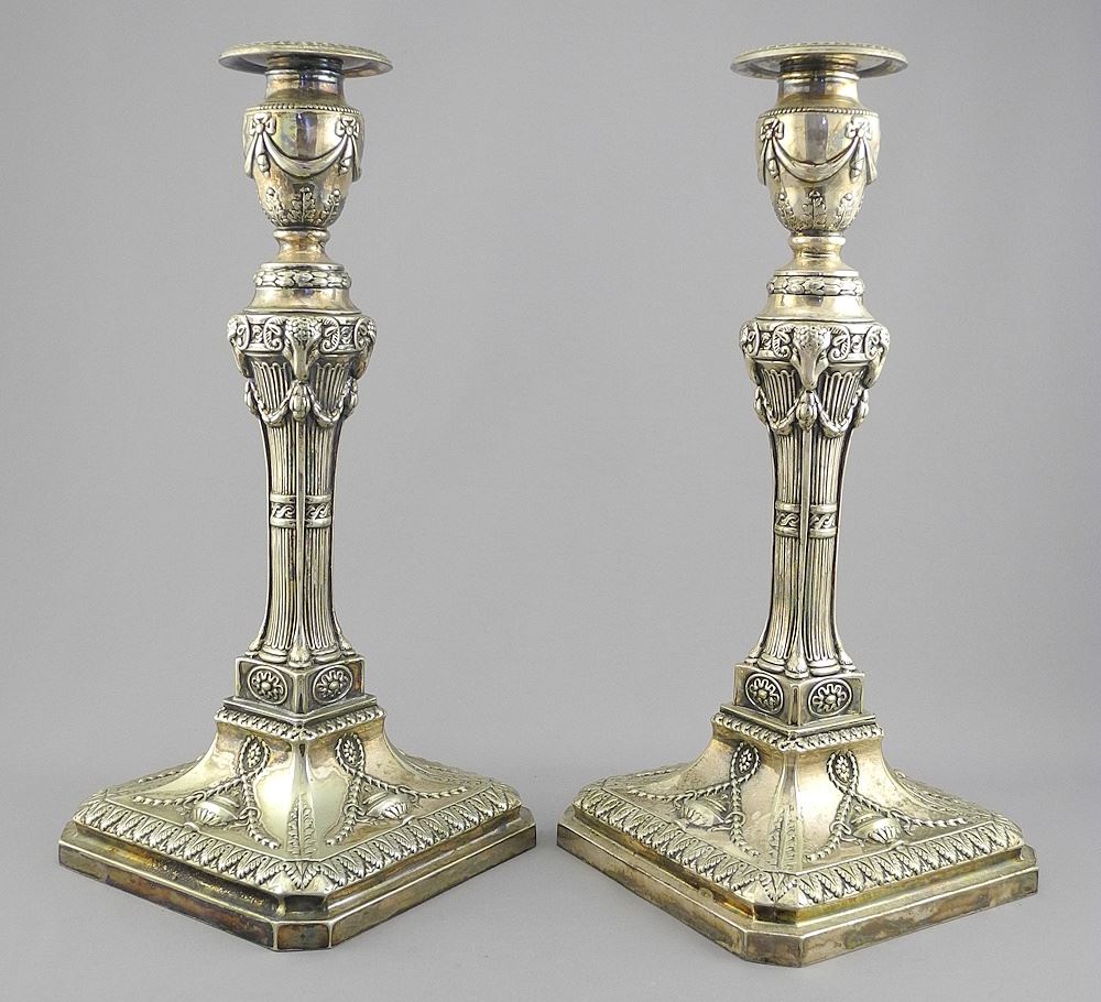 Pair of Ellis Bros. Silver Plated Candle Sticks, 12"h.