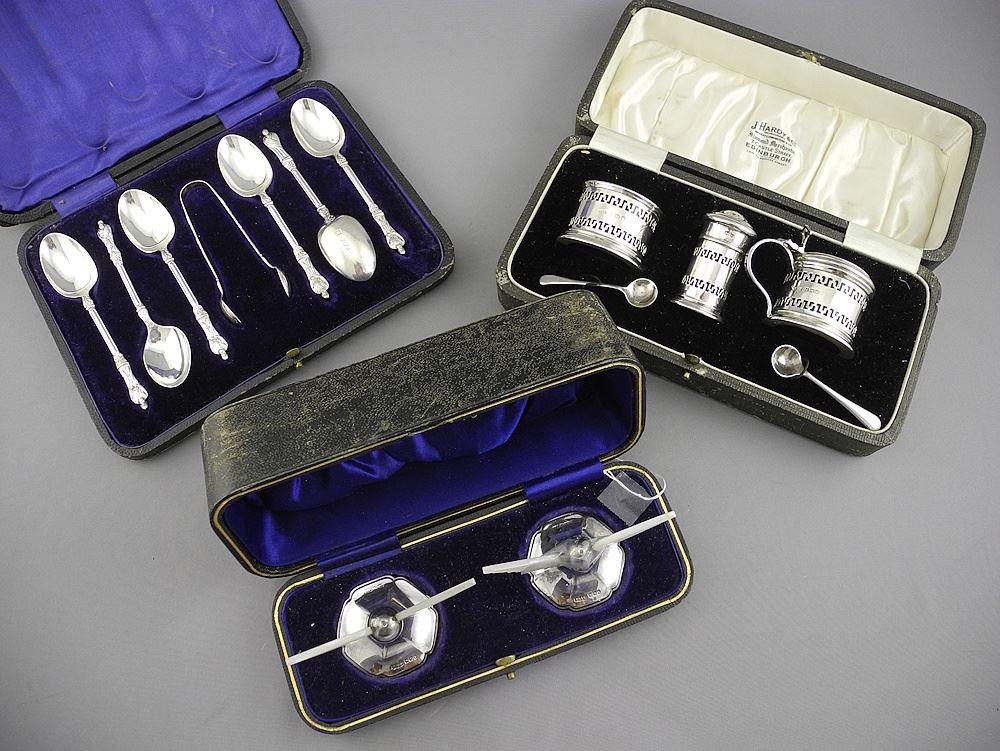Silver: Condiment Set/3 Sorbets (258 g weighted)/Spoon Set/Knife Rests (damaged) TW 254g.