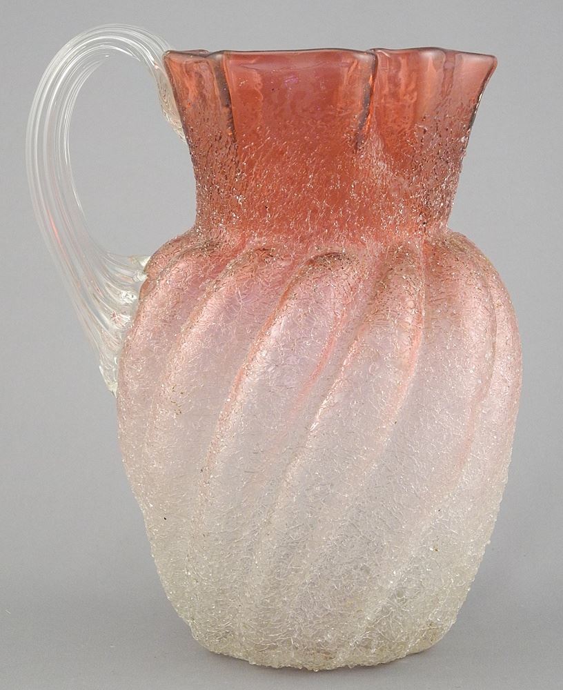 Antique Stourbridge Cranberry Crackle Glass Pitcher, 7 1/2".